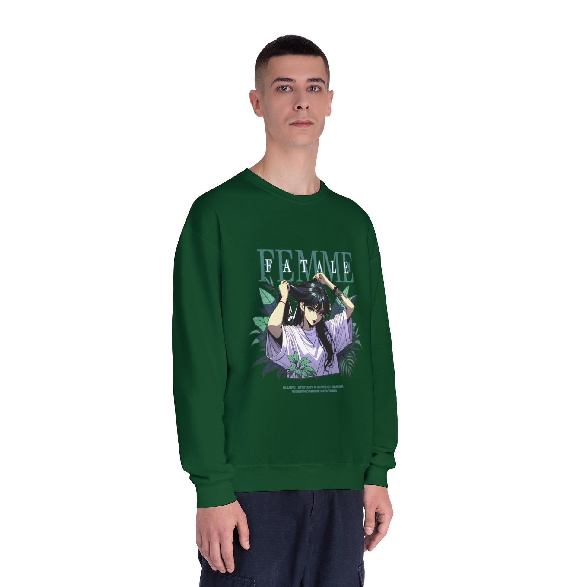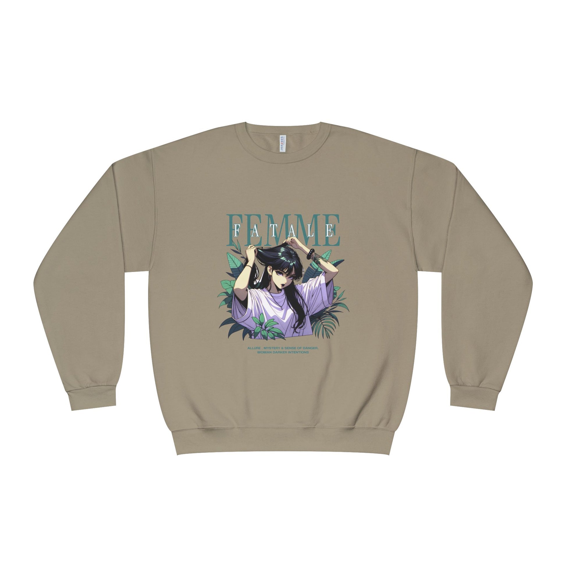 Femme fatale anime girl theme sweatshirt. Unisex NuBlend® Crewneck Sweatshirt. For chilly summer evenings and warm winter layers, sweatshirts are a staple item all year round. The NuBlend® fleece is pre-shrunk, pull-resistant, and quarter-turned so it won't crease in the middle. Made from 50% polyester and 50% sustainably sourced USA cotton, they're very soft to the touch. Your favorite japanese manga sweater for a happy holidays!