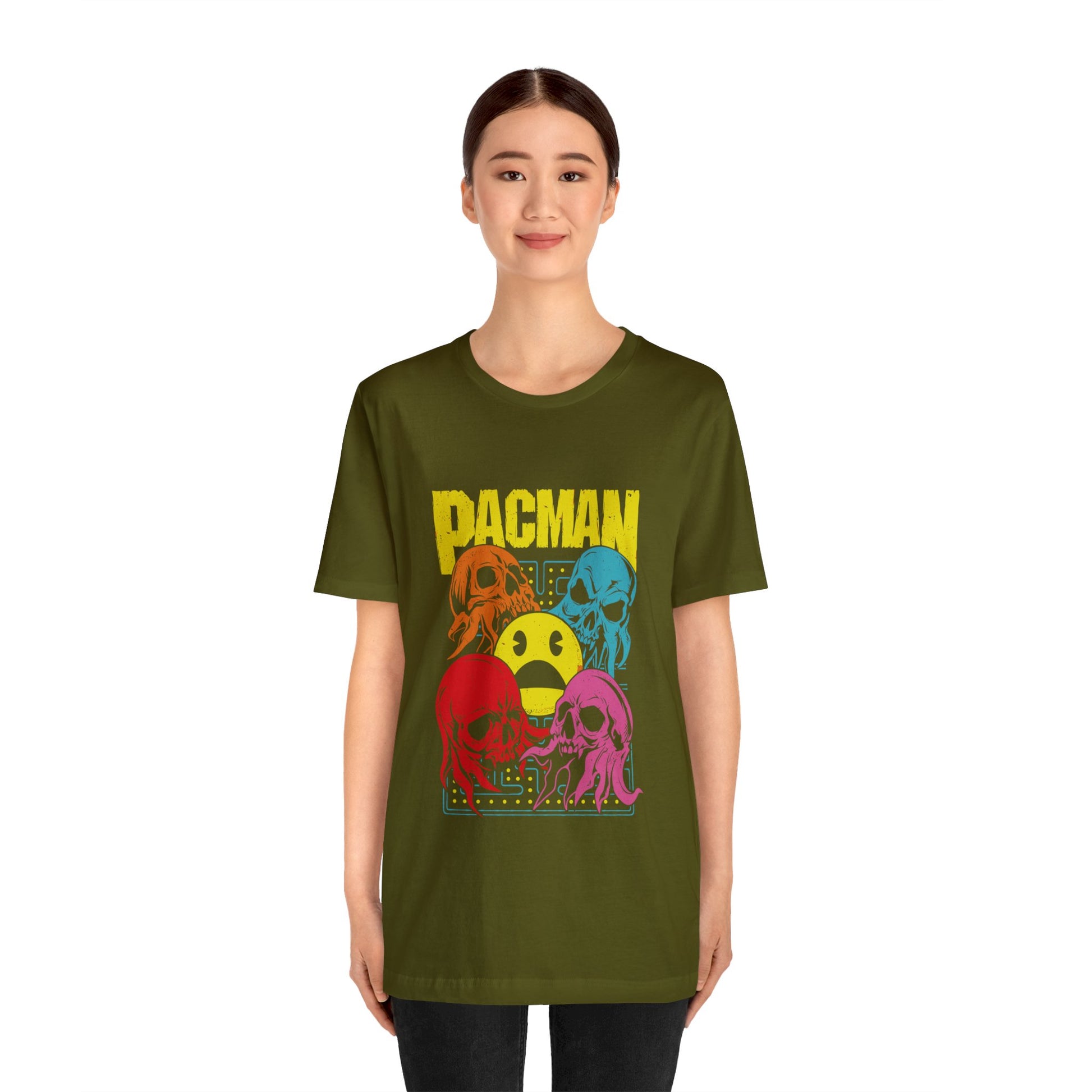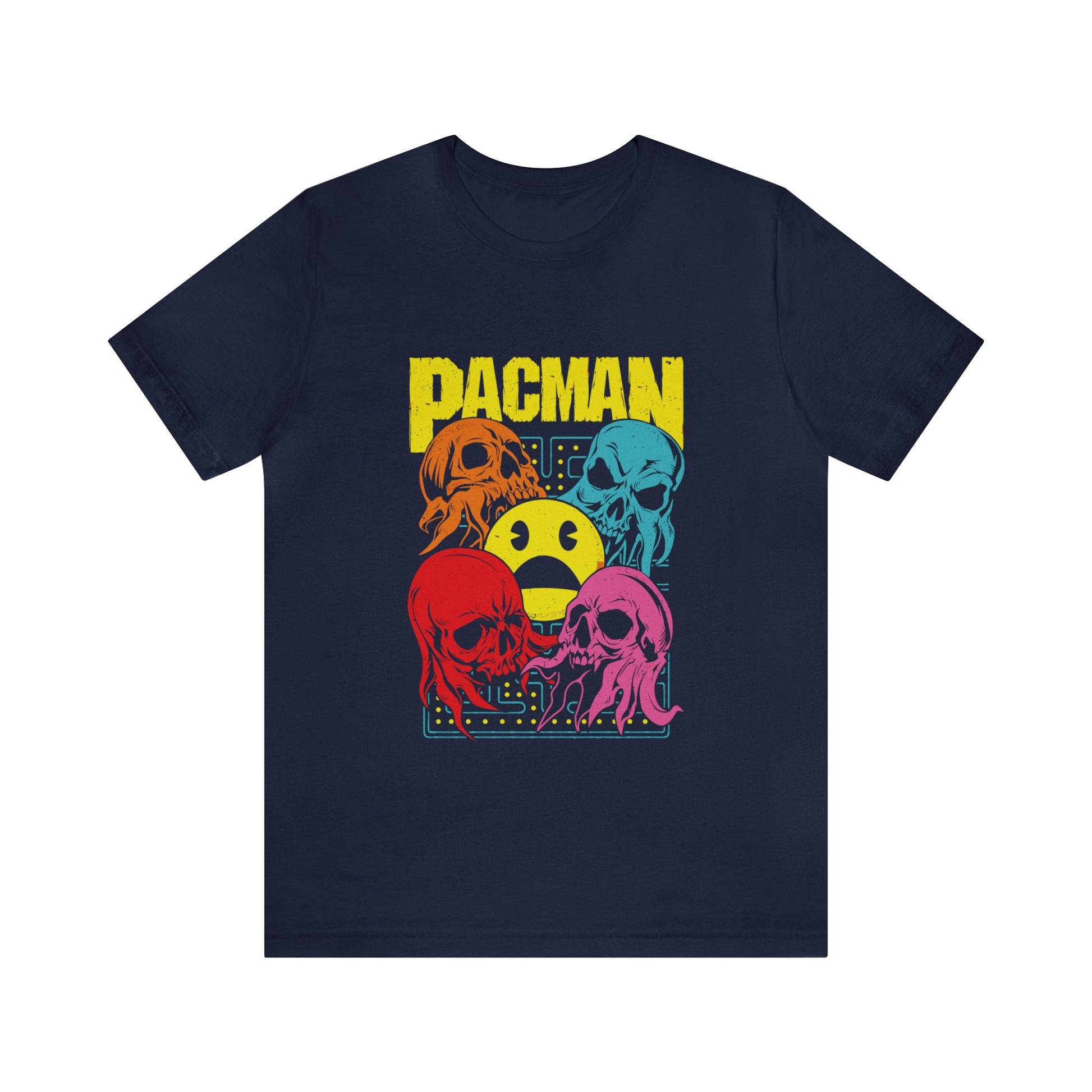 This pacman ghost video game classic unisex jersey short sleeve tee fits like a well-loved favorite. Soft cotton and quality print make users fall in love with it over and over again. These gaming t-shirts have-ribbed knit collars to bolster shaping. The shoulders are tapered for a better fit over time. Dual side seams hold the garment's shape for longer. Gamer Video Game Shirt for gamers.